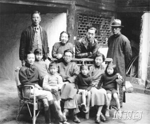 西南联大时期的教授之家。后排左起:周培源、陈意、陈岱孙、金岳霖;前排左起:林徽因、梁再冰、梁从诫、梁思成、周如枚、王蒂澂、周如雁。