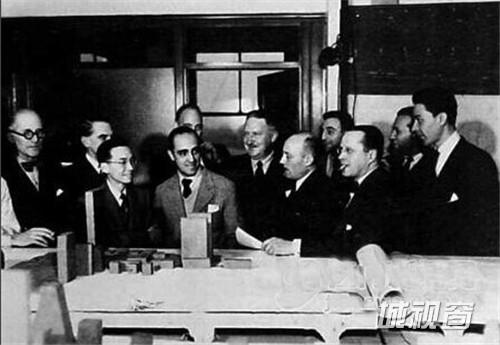 1947年,梁思成(左三)参与讨论联合国大厦方案。