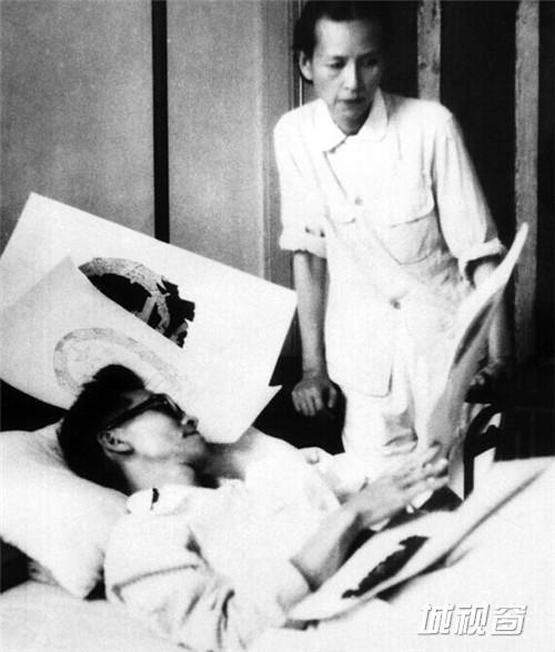 1950年,林徽因与病中的梁思成讨论国徽设计图案。