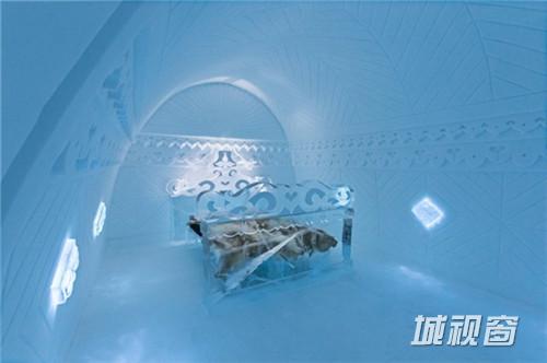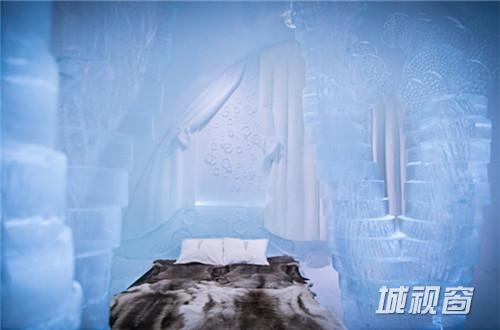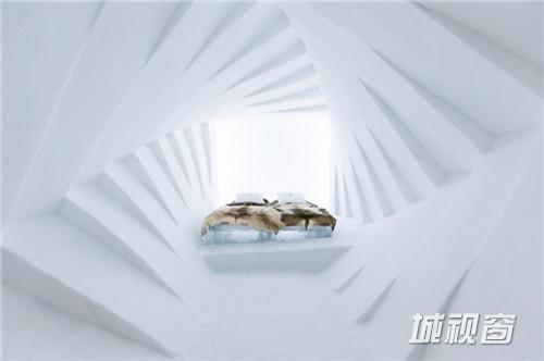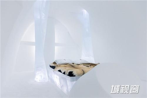 这间套房由荷兰艺术家Wilfred Stijger和Edith van der Wetering设计。仔细看,冰柱上的雕刻轮廓像极了树干,让住客仿佛置身在冰雪世界的春天里。