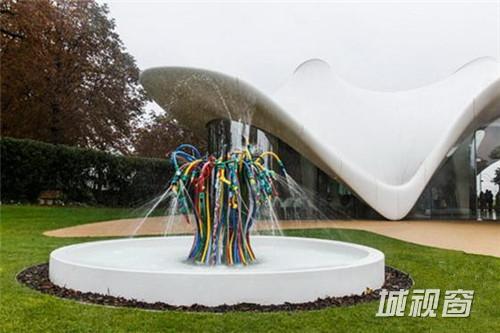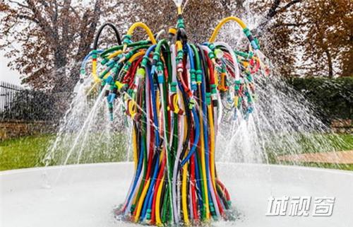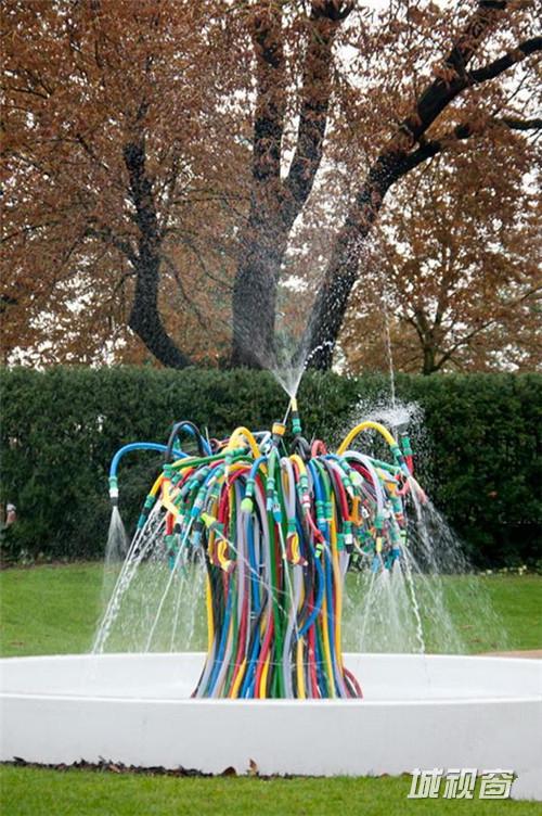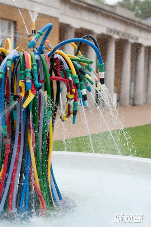 Serpentine Sackler美术馆委任法国艺术家Bertrand Lavier建造的这个名为“喷泉”的艺术作品。它位于美术馆前方的一片草地上。Lavier用许多旧物和废弃品创造了这些艺术组合并和颜色亮丽的橡胶软管和塑料喷嘴制作了这个雕塑。