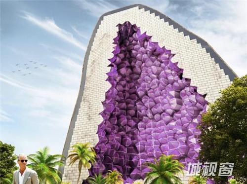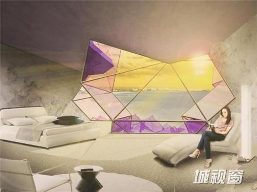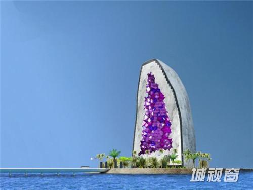 第一座紫水晶酒店将会位于一个中国的人工岛——海洋之花。这也是一个合适的选择,因为紫水晶在中国风水艺术中占有很重要的地位。客房将位于酒店中心的空隙中,充分享受慷慨的阳光。循环的通廊遍布整个酒店,可以访问酒店每一层的每一个房间。