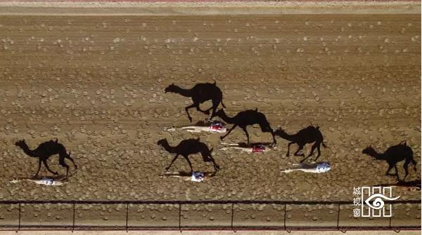 3、迪拜一年一度的骆驼比赛,参赛的骆驼们在地上投下了生动的阴影