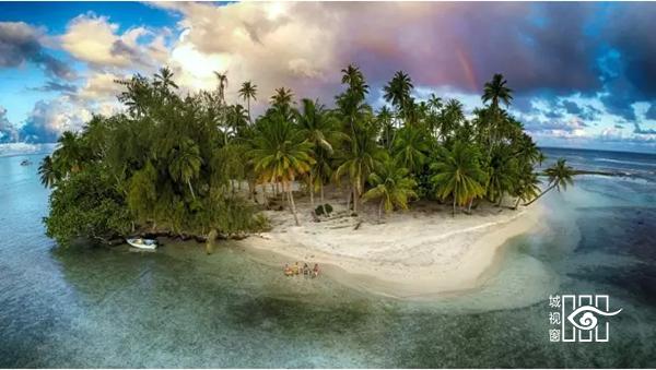 9、法属玻里尼西亚的失落之岛,坐在沙滩上的游客