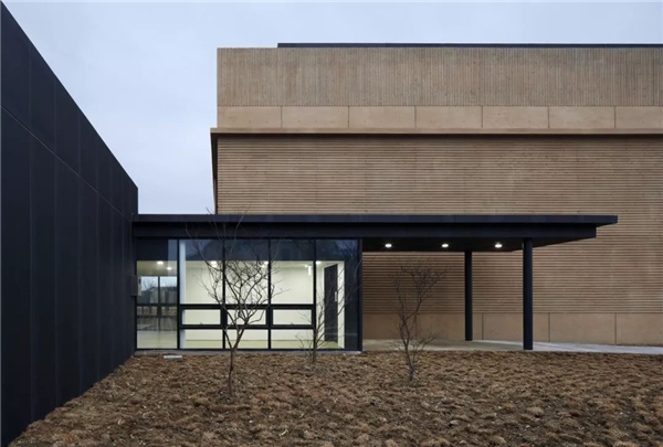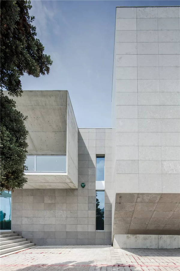 倾斜墙面的混凝土悬挑结构和入口设计