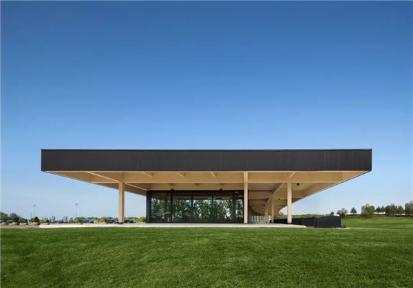 巨大的屋顶悬挑于曲线型的建筑之上