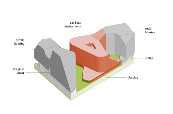 多方案块包括养老院,社会住房,私人住房,宗教中心和零售
