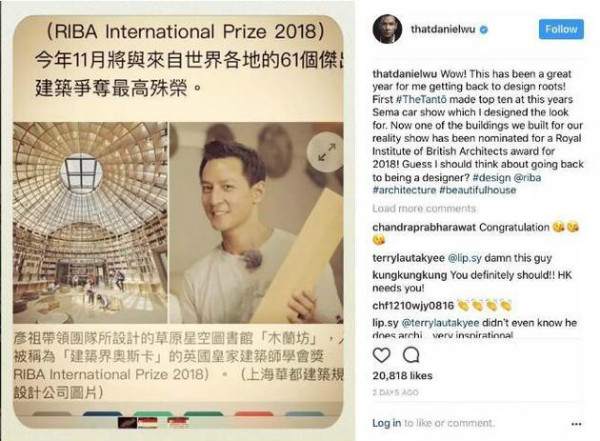 事实上,2017年12月12日,RIBA就在社交媒体上宣布了吴彦祖设计建筑入围提名的消息。