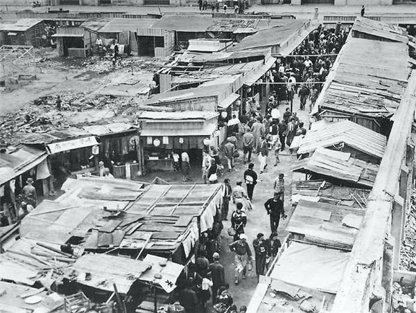 时间来到20世纪。1945年日本投降后,国内经济陷入混乱,在生活物资严重匮乏的情况之下,“闇市”(即黑市)在日本各地异常的活跃,东京上野一带一度地摊如云。