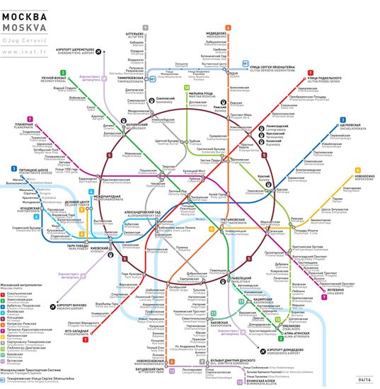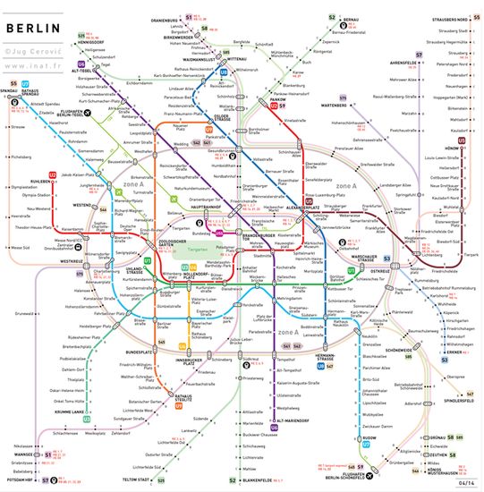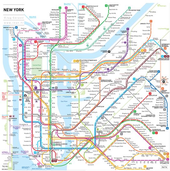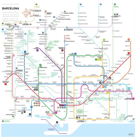INAT是Cerovic自制的一套导航系统,这个系统帮助他设计简单易读的地铁地图。其设计的核心思想就是将城市中心放大,这样可以画下更多线,容纳更多车站,用不同颜色区分各个线路,并同时给各个线路标上不同名字。他将地铁线路画的横平竖直,或者是倾斜45度,并尽可能使这些线路的拐弯处不超过5处。