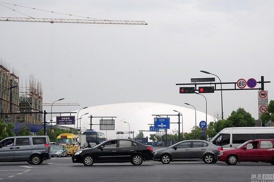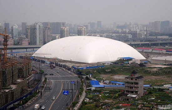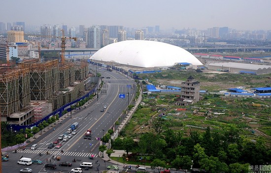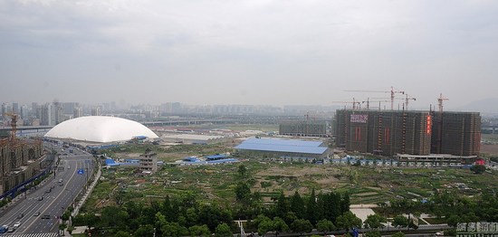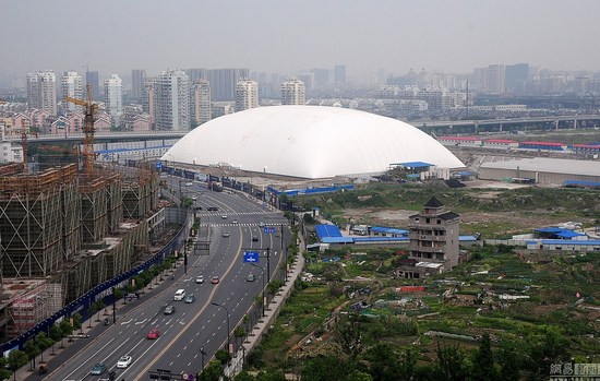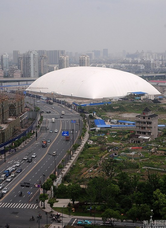 5月13日,杭州新风路原杭州农药厂的旧址上,当地为覆盖重度污染毒土壤修建了一顶超级帐篷。