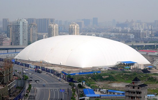 2014年5月13日,在杭州新风路原杭州农药厂的旧址上,搭建起了一顶大2万平方米,高36米的超级帐篷,主要用来覆盖重度污染毒土壤。