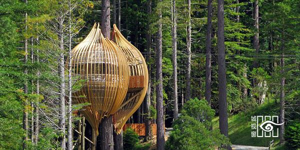 新西兰奥克兰市的“红木树屋餐厅”坐落于一棵高40米,直径1.7米的红杉树上