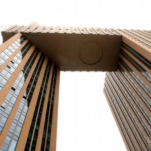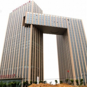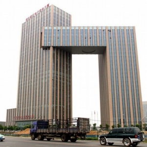 河南省郑州市这栋由同济大学建筑设计院综合设计一所主持设计的郑东新区电子商务大厦,因外形酷似中央电视台新大楼而成了名楼,被网友戏称为挑战央视大楼“大裤衩”的郑州“小裤衩”。