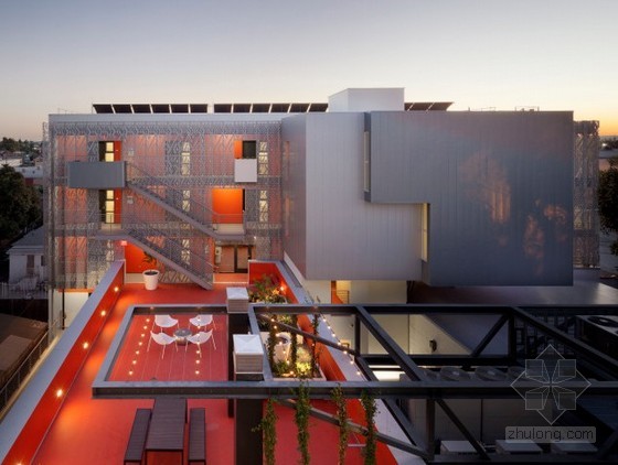 1.28th Street Apartments(洛杉矶),是由KoningEizenberg设计,它是对建于80年代在洛杉矶原始基督教青年会大楼的改建。49间公寓,可为生病的孩子和无家可归者提供寄养制度,有8000英尺(约743平方米)的空间提供支援服务。它罕见的把太阳能电池板的盖在侧壁上,而不是在建筑物的屋顶上。