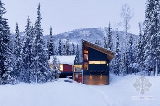 3.Kicking Horse Residence(不列颠哥伦比亚省,加拿大)屋顶的设计,使雪的重量不是负担,小屋的倾斜设计使雪自然降落。