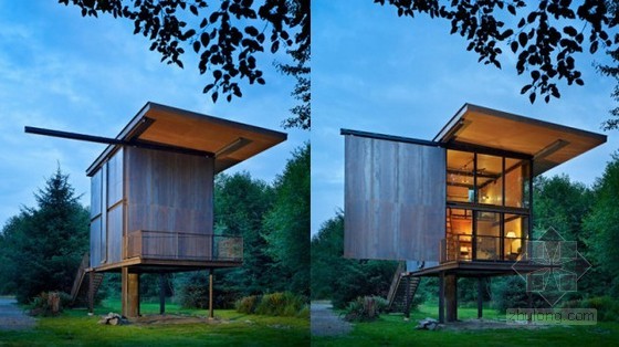 5.Sol Duc Cabin(西雅图,华盛顿)是由KUNDIG建筑师设计。狂热的钓鱼爱好者夫妇被“坚固的房子,小巧的钓鱼之旅”所吸引,是一个小的高跷小屋,可以通过拉动的门进行封闭。