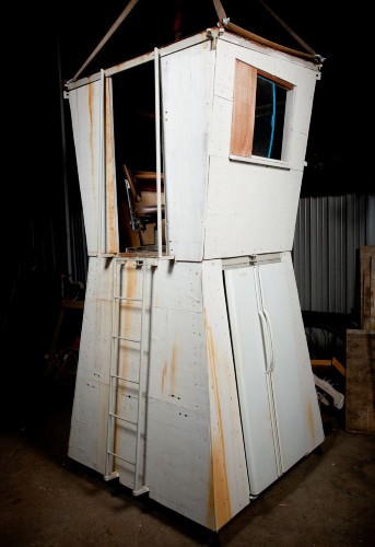 只需铁钉、螺钉及胶水等物,科隆便能将各类回收垃圾组装起来,变成可移动的迷你房屋。