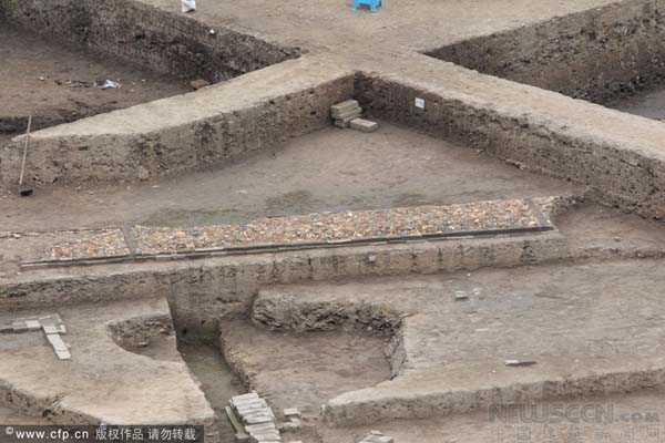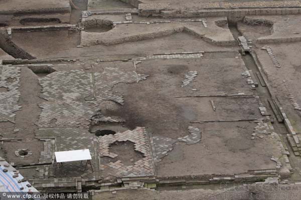 这方天井的西北面就是曾经引发市民热议的砖石道路和拼花散水小径,而砖井台遗迹就在天井的东南角上。据考古现场负责人易立介绍,这口砖井与天井并非同一时代的产物。砖井目前判断是宋代的,而天井和目前发掘的建筑遗址大部分都被初步判定为唐代。他称,虽然天井外围的破坏较为严重,目前尚未发现夯土痕迹和柱础。但由于天井的面积都如此巨大,其建筑等级应该很高,除了可能是达官显贵的住宅外,更有可能是唐代的官衙。