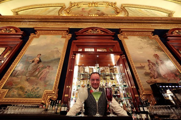 Barman Vincenzo Pentasuglia在吧台后面,他在这里工作了12年。照摩纳哥法律,本国人不准入内赌博,观光客自然欢迎,然后凭护照交十法朗便成为一日会员,凭此证才能进入赌场。内有适合歌剧表演的大舞台,再过一道门进入一间大厅,便是著名的赌场了。