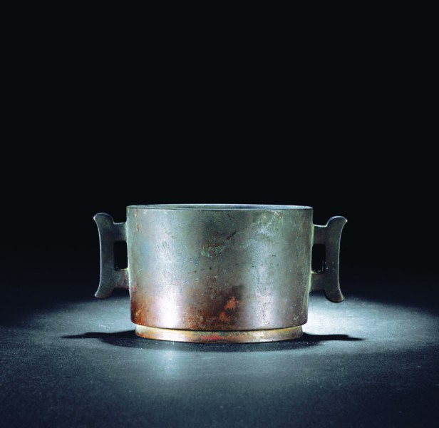 清 铜双戟耳炉“陈坤兴置”四字二行篆书刻款