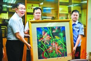 昨日上午,越秀警方将画发还给北园酒家。北园酒家向警方赠送两面锦旗,以示感激。酒家表示,以后要加强防范,藏起一些太贵重的字画,悬挂之时也会将字画向墙壁钉死。(记者陆建銮 通讯员施桂鸿、李玺迪)