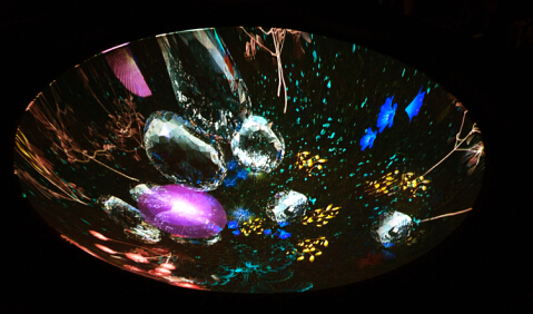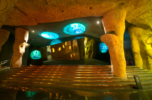 水晶与风水的展示,设计者不希望让参观者感觉仅仅是玄妙和古老,因此采用了更多具有未来感的风格进行表现。此区共分为水晶书房、奇门遁甲、水晶卧室、九宫格四大部分。