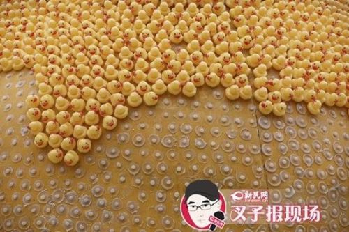 记者获悉,这个大鸭梨本是港汇广场内一家店铺做的宣传造势活动。一万五千只小黄鸭吸附在鸭梨表面,形成一个独特的作品。5月28日这个“鸭梨”出现在港汇广场前的空地上,到而今天(6月2日)记者在现场看到,鸭梨的底部的小黄鸭已所剩无几,仅仅留下大量吸盘,靠近顶部的则暂时得以幸免。