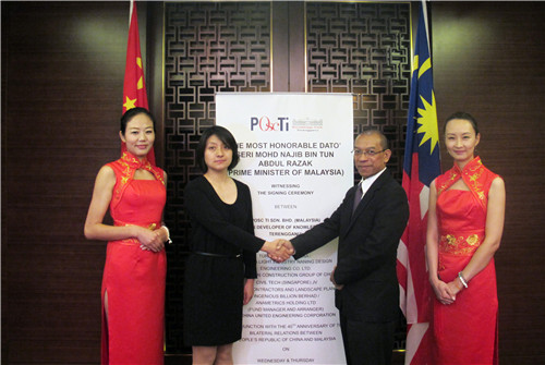 签约仪式举办之时,恰逢马来西亚和中国建交40周年之际,马来西亚总理纳吉布及官员及与中国相关贸易公司等一行共同访华,其中包括Terengganu州知识城的开发公司POSCTI。5月28日上午,POSCTI一行15人抵达北京,连同土人设计相关人员一同为中马两国的签字仪式做最后的准备与协调。当日下午,马来西亚总理纳吉布下榻中国大饭店,土人设计首席设计师俞孔坚代表中方合作单位受到总理纳吉布的接见并与之握手纪念。由于马来西亚王室Sultan Azlan Shah of Perak的突然辞世,纳吉布总理需紧急处理国内事宜。马来西亚国际贸易及产业部部长Datuk Seri Mustapa Mohamed受马来西亚政府及纳吉布总理的委托,到访见证仪式并提前预祝签字仪式圆满成功。