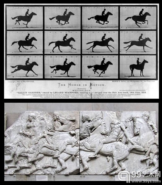 这如何能不令人想起电影诞生之际的那些串联而起的定格照片——一匹马奔跑时的活动影像?电影卷轴也是一圈接着一圈,令运动在时间中发生。帕特农神庙是一座古老的电影院,而电影也是最当代的巫术仪式。