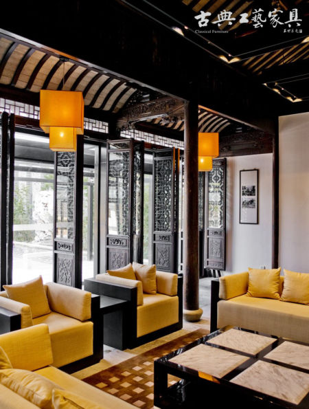 家具均由宋微建亲自设计,一桌一几,一椅一榻,造型精简又不失传统之神韵