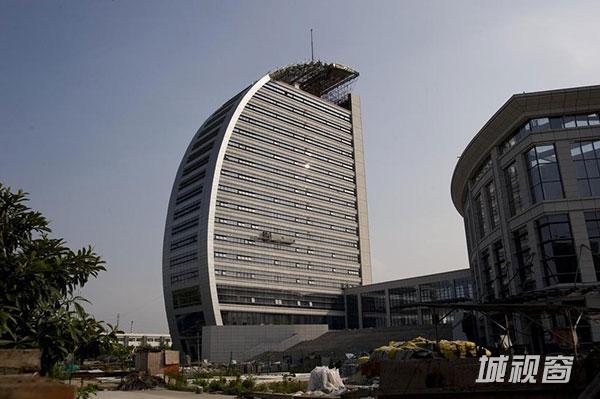 在“金条”建筑南边不足200米处貌似迪拜帆船酒店的正在修建的建筑是海安广电中心新址。