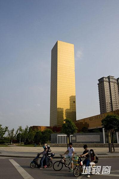 当地有人称这座高200米、通体金黄的建筑为“金条”。