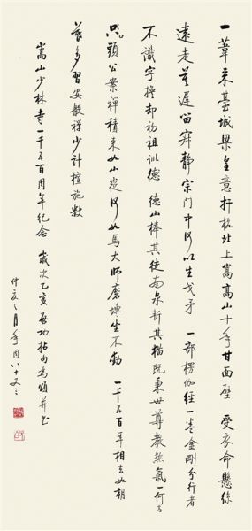 启功的行书《嵩山少林寺一千五百周年征题》,在北京华辰二○一四年春拍中以八十万五千元人民币成交。