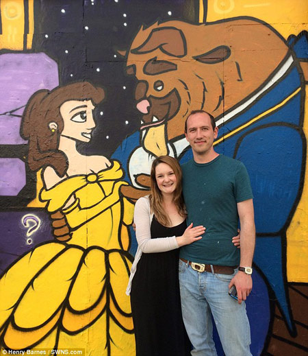 作品完成后,他带着26岁的未婚妻丝黛茜去喝咖啡,然后经过这幅壁画,壁画上是她最喜欢的迪斯尼电影《美女与野兽》中的人物。