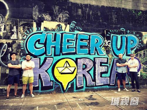 据韩联社6月6日报道,韩年轻艺术家日前在美国纽约布鲁克林区一条著名街道悬挂巨型壁画“韩国,加油”,鼓励韩国人走出“世越”号沉船事故阴影,迎接新的生活。