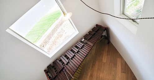 三角形的屋顶仿佛两片纸对角粘结后吹入了空气一般微微膨胀,呈现出可爱无比的粽子形状。Studio Velocity的建筑师希望该建筑能够很好地融入到该区域的环境中。Swelled house的客户是一位女理发师和她的两只猫。首层的一侧作为理发厅,另一侧是厨房,而二层是女主人居住所在,包括卧室,会客厅以及一间琴房。Studio Velocity的作品总给人带来童话般美好的感觉,是那么的不真实却那么的美好……