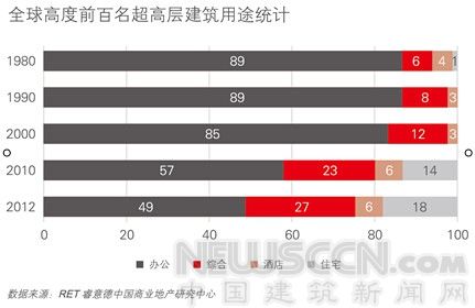 全球高度前面名超高层建筑用途统计