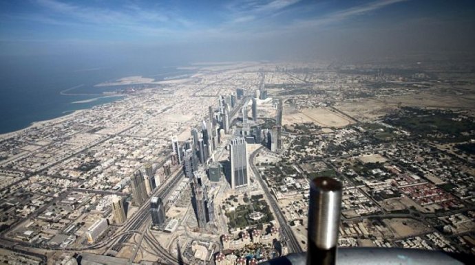 在“迪拜塔”已完工的楼层上,安新装了3台巨大的塔式起重机来起吊大量的建筑材料。