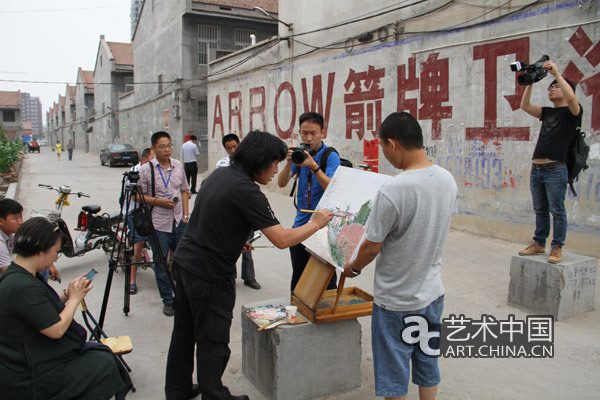 艺术家于会见在李庄村路口写生