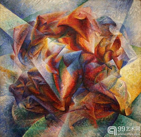 翁贝托·博乔尼《玩足球者的物力论》(1913) 图片来源: The Sidney and Harriet Janis Collection