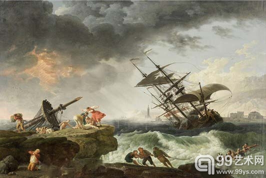盖伯瑞尔·库尔图瓦·德布拉斯尼绘制的这两幅风景画作分别描绘了夕阳下的海港和礁石海岸上的沉船,场面浩大且动静相宜,令人感觉仿佛置身其中。2014年7月9日,由法国十八世纪知名艺术家克劳德·贝内特(ClaudeVernet)创作完成的两幅对比鲜明的精美风景画珍品将惊艳亮相伦敦邦瀚斯《古典艺术大师瑰丽画作》主题专场拍会,总体估价高达150万至200万英镑(约合人民币1575.5万至2100万元)。据了解,该法国名家贝内特于1775年为圣马洛大主教(ArchbishopofStMalo)盖伯瑞尔·库尔图瓦·德布拉斯尼(GabrielCourtoisdePressigny)绘制的这两幅风景画作分别描绘了夕阳下的海港和礁石海岸上的沉船,场面浩大且动静相宜,令人感觉仿佛置身其中。回顾历史,圣马洛大主教德布拉斯尼曾于1788年参与了议会对于神职人员制宪角色的讨论,在业内具有较高的声望。在1789年爆发了法国大革命之后,反教权主义的浪潮骤然掀起,德布拉斯尼虽然得以从中幸存,但也不得不于1792年离开了法国。直至1799年拿破仑政变确立了大革命时代的结束之后,德布拉斯尼才得以回国。随后在路易十八(LouisXVIII)时期成为了法国驻罗马大师,结束了贝桑松(Besan?on)大主教的任职。此次上拍的这两幅名家贝内特画作对比了夕阳下海港的平静与大海破坏性力量的喧闹,被广泛认为是对法国革命之前浪漫情感的强烈诉求。同时,它还充分反映了该画家对创立自然威严理想化视野的坚定艺术抱负,虽然有时会与其顾客所重视的地形风貌表现需求发生冲突。邦瀚斯古典艺术大师瑰丽画作部门主管安德鲁·麦肯齐(AndrewMckenzie)表示:“贝内特在十八世纪60年代至80年代对其直觉的追随成就了他伟大的事业,堪称其最成功的艺术巅峰时期。他通过发挥想象和增进技艺,逐渐在整个欧洲艺术领域内声名远播。二十年来,对于自我追求较高的藏家而言,缺少贝内特珍贵画作的艺术收藏是不完整的。”