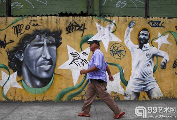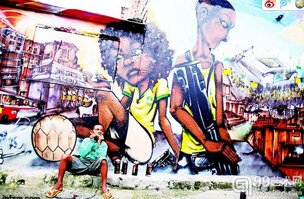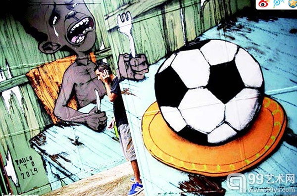 年轻的涂鸦艺术家保罗·伊藤在圣保罗的一幅涂鸦被广为流传:一个饿到哭泣的巴西小男孩,拿着刀叉想吃东西,可是盘里只有一个足球。