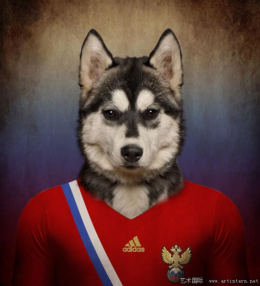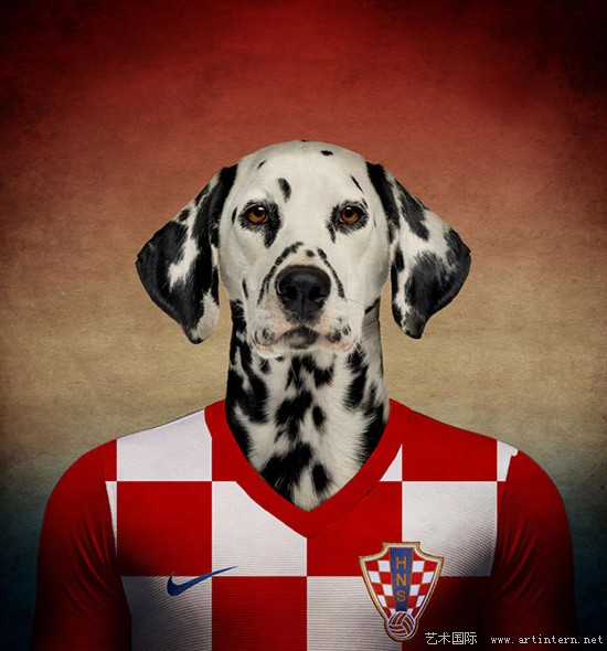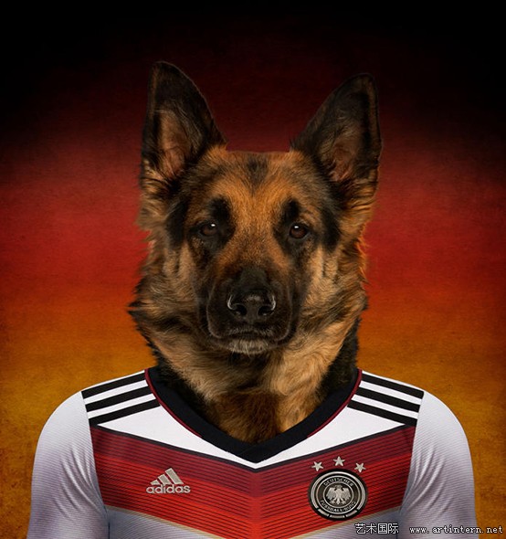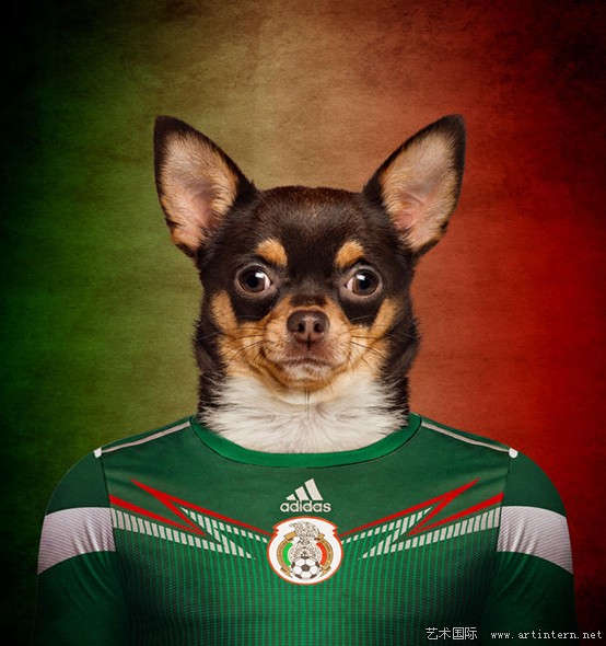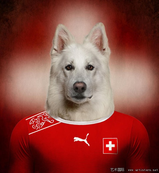 近日,比利时野生动物摄影师埃里克制作了一组名为"了不起的世界杯小狗"的组图。穿着各国巴西世界杯球衣的狗狗都是各个国家珍稀犬类品种,背景采用的也是各国国旗颜色。