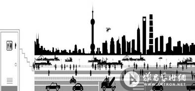 《小黑和兄弟浏览外滩》(局部),徐冰,2012年作