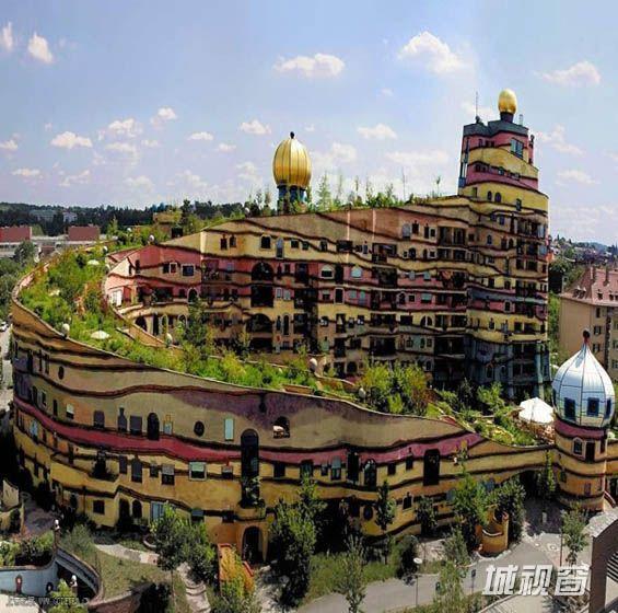 森林螺旋城位于德国达姆施塔特,建筑的颜色代表着不同沉积岩的地层,内有105间公寓和一个餐厅。