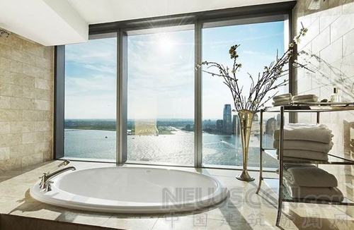 如果说这栋公寓还有什么值得卖出上亿美元的天价,那么只要看一眼浴室的景色就一目了然。还有什么比能在如此美丽的景观下洗澡更奢华的事情呢?