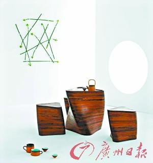 上海木码设计机构创办人侯正光曾设计过一组名为“三人行”的坐墩和茶几,就是利用木材本身的肌理,进行扭曲,让线条产生动感,而木材本身的不规则又包含了自然的有机形态,让人的视线情不自禁跟随线条的律动无限延伸。