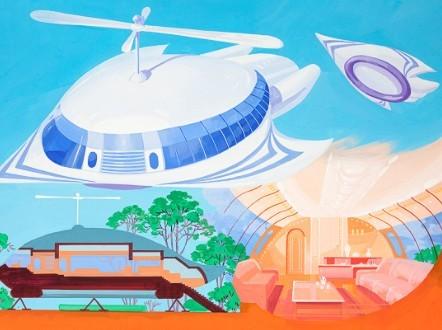对蓝天的遐想:图中展示了一栋飞行屋同时可以充当气垫飞船。