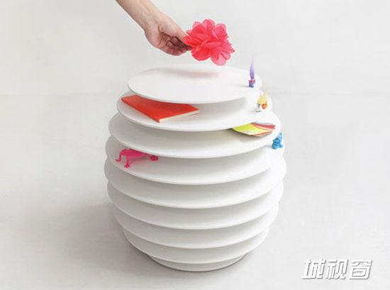 而这一次设计师将这个设计创意元素运用到了家居设计中的桌面设计中去,这便是小编今天要介绍的蜂巢桌子创意设计。圆圆的从斜下角度看去,整个桌子看起来就像是一个蜂巢一般,密密麻麻层层叠叠,从水平面看去,原来整个桌面是由多个层面组合而成的立体结构。